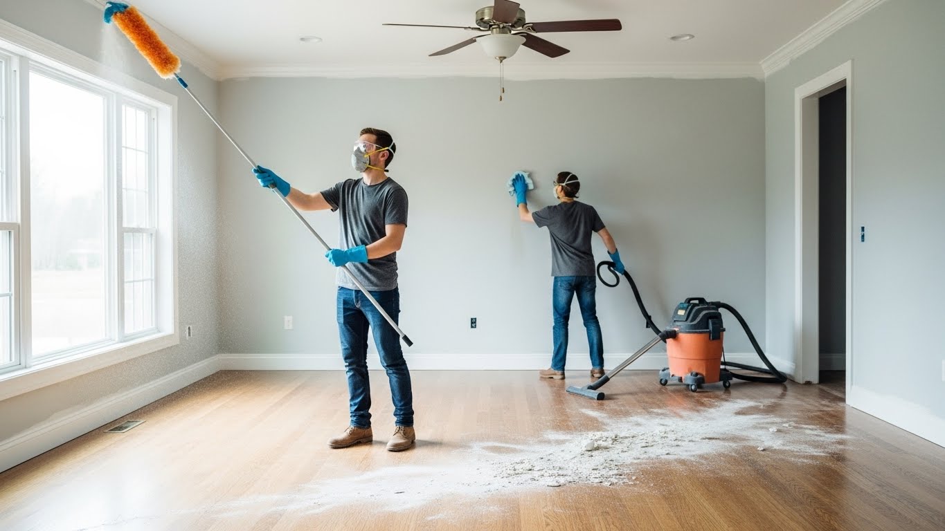 Now, we’ll implement deep cleaning strategies, working from top to bottom. First, dust ceiling fans and light fixtures with a microfiber cloth. Next, we’ll spray and wipe windows, mirrors, and picture frames. For wooden furniture, we’ll use appropriate cleaners that won’t damage the finish. Don’t forget to address often-overlooked spots like windowsills, door frames, and baseboards.